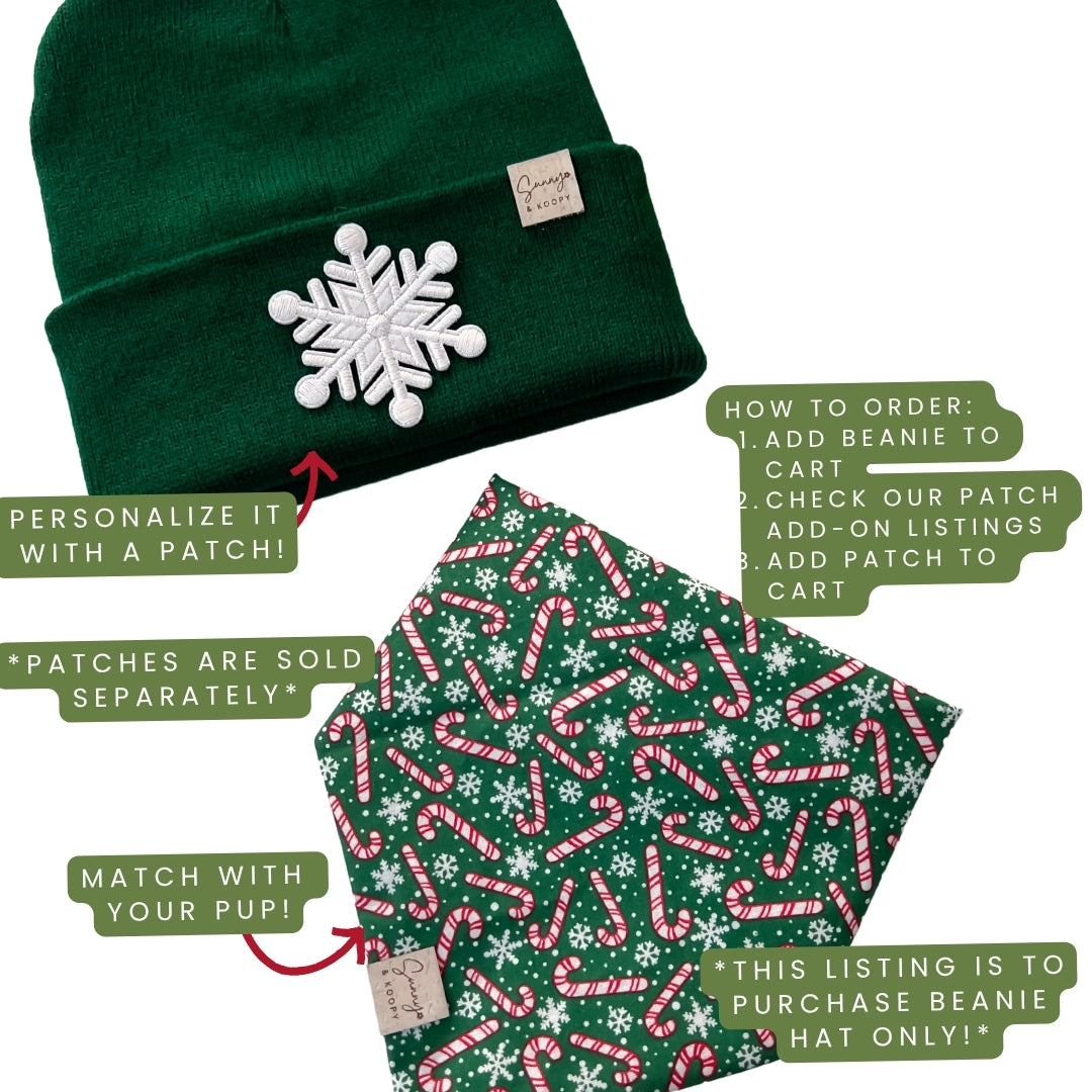 🎉 New Product Alert! 🎉 Sunny and Koopy now has the cutest accessory to match our Christmas bandanas: customizable beanie hats!