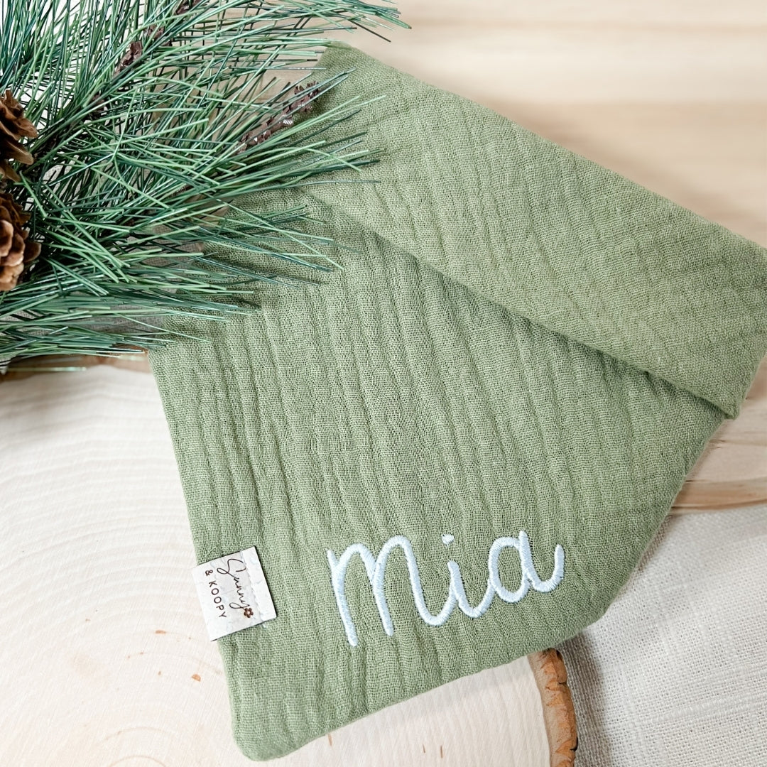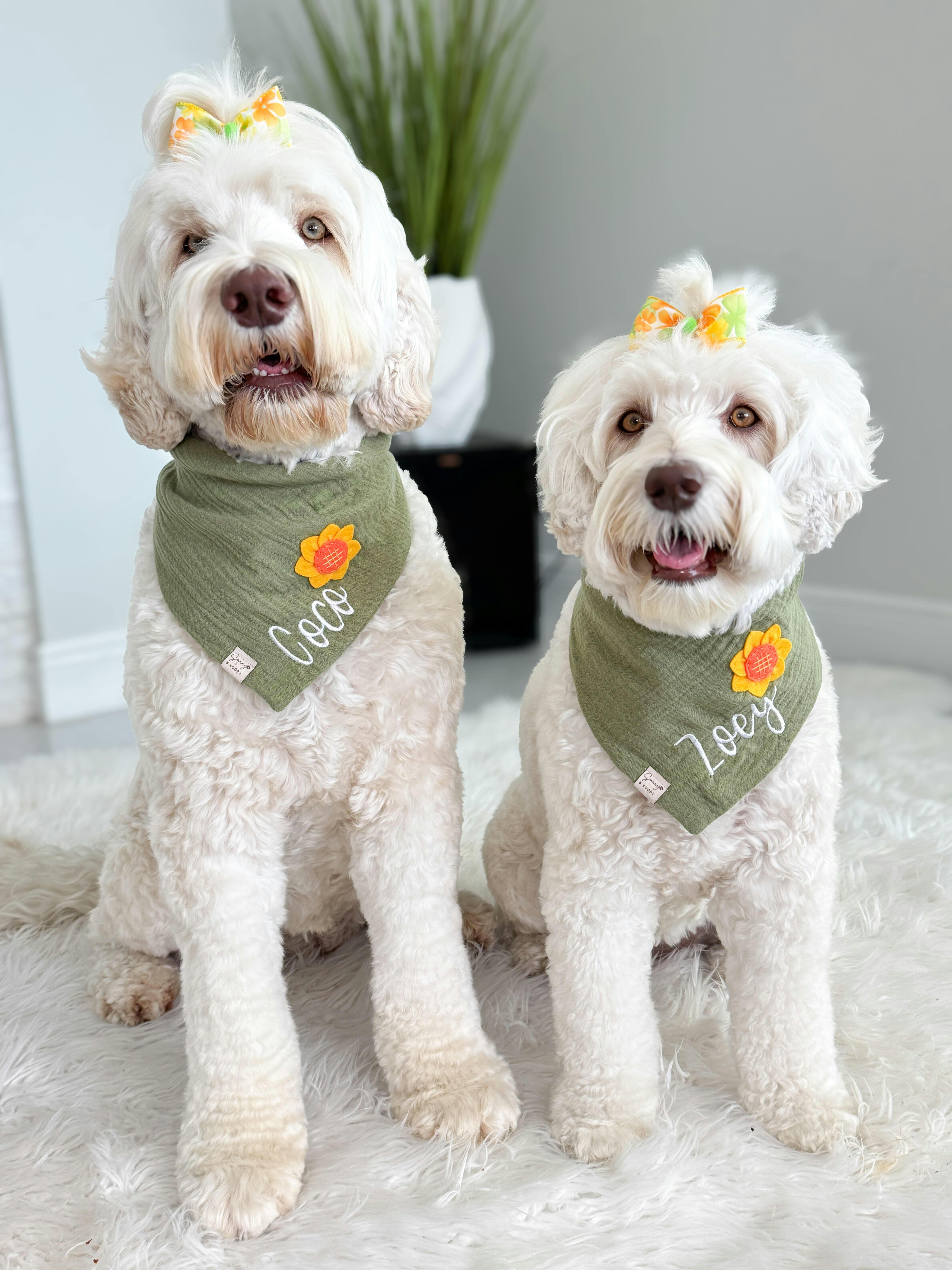 Our Custom Name Embroidered Bandana is the perfect way to add a personal touch to your pup’s everyday look. Made with soft, airy cotton gauze and beautifully stitched with your dog’s name, each bandana is handmade with care and love.