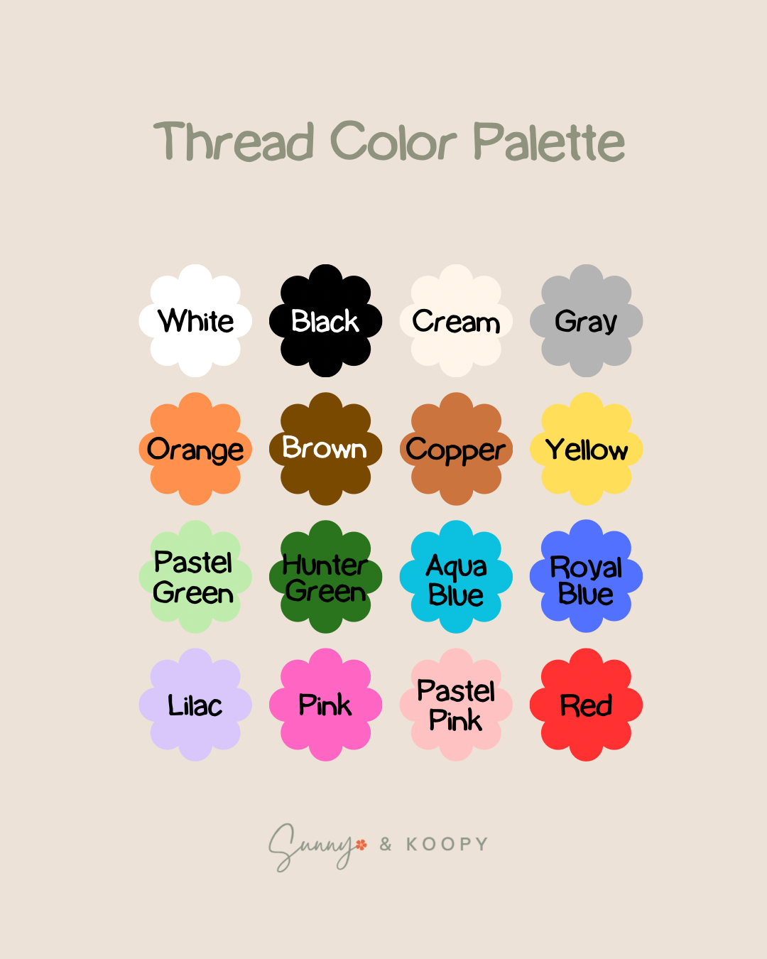 Accessory color will be embroidered in the thread color of your choice.